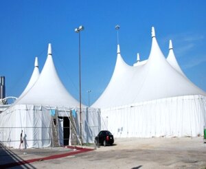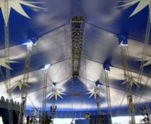 Il core-Business dell'azienda.  Strutture basate sull'installazione di antenne interne, strallate con funi di metallo e combinate con anelli, tralici e/o cupole che sostengono la membrana e una configurazione di contrasto perimetrale (Pali, Puntoni, Tiranti metallici o in fibra sintetica ancorati al terreno con sistemi temporanei).